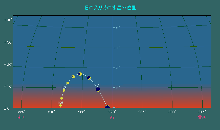 2月20日は水星が東方最大離角となり、夕方に見ごろとなります。