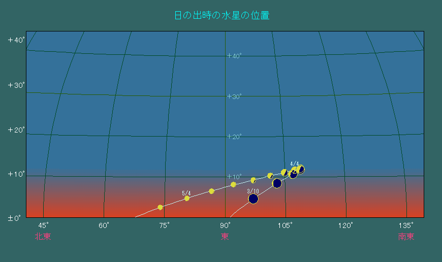 日の出時刻における水星の位置変化 |