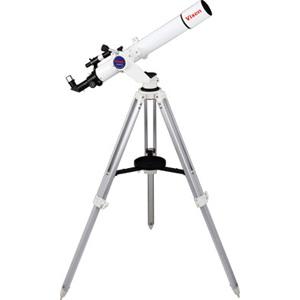 | 80mm | 910mm | 屈折 | 経緯台 | ポルタ経緯台の新機種ポルタ2シリーズで、以前に発売されていたポルタA80Mfの後継機です。A80Mfに採用されているポルタ2経緯台についてはR130Sfと同じです。 ポルタ2経緯台は鏡筒を手で持って自由に動かすことができ、手を離した位置で固定されるフリーストップ式です。また、フリーストップの固さを調整する工具を経緯台本体に収納できますから、工具忘れの心配もありません。 屈折式天体望遠鏡の入門機としては少し大きめの口径80mmだけに、惑星観測などで威力を発揮します。ファインダーも6倍30mmで、入門機としては必要十分なものです。 大型のアルミ三脚が採用されていますから、長時間安定した天体観測を行うことができます。 接眼レンズはPL20mm(46倍)とPL6.3mm(144倍)、6倍30mmのファインダーが付属します。付属の正立天頂プリズムを使うと正立像が得られますから、地上風景を観察することもできます。総重量は9.0Kgあるので入門機としては少し重たい感じです。 |