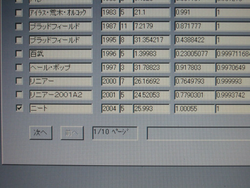 右図の一番下の行を参考に、画面の左側半分を設定します。入力する行は何行目でもかまいません。左端のチェックを入れないと彗星は表示されないのでチェックを入れておきましょう。