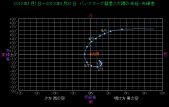太陽を中心に据えた場合の動きをグラフ化して説明。太陽との相対位置関係を見ることで、パンスターズ彗星の観測条件をうかがい知ることができる。