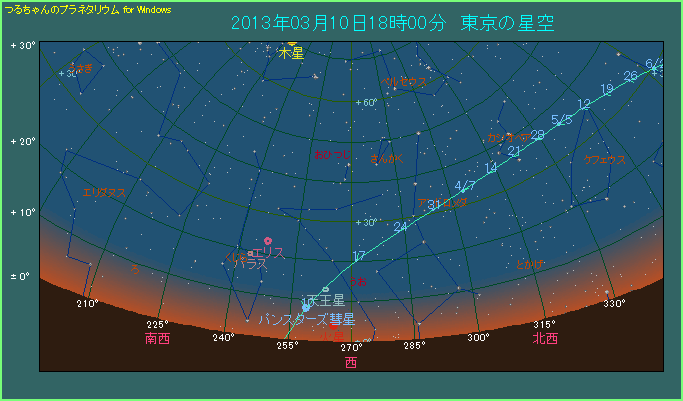 天文ソフト「つるちゃんのプラネタリウム」使ってパンスターズ彗星を調べましたが、いかがでしたか?