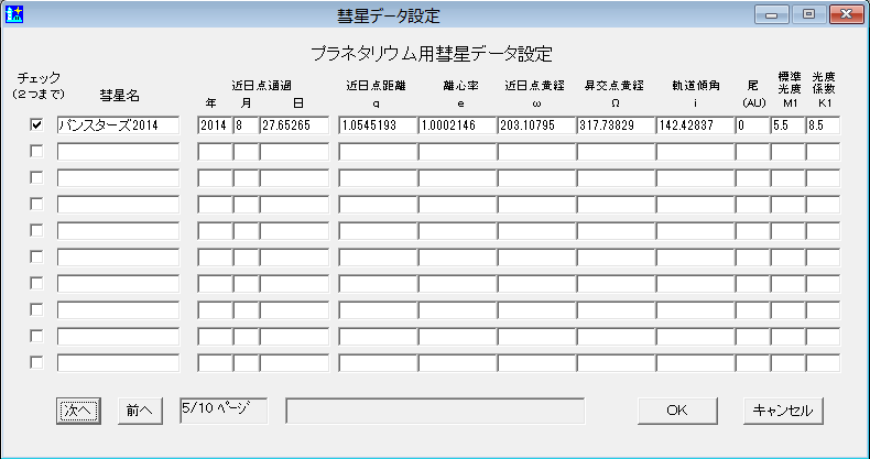 4.プラネタリウム用彗星設定画面の左下にある[次へ]ボタンを何度か押す。