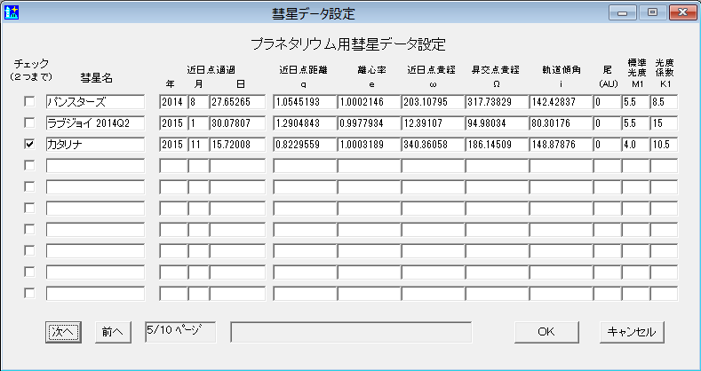 4.プラネタリウム用彗星設定画面の左下にある[次へ]ボタンを何度か押す。