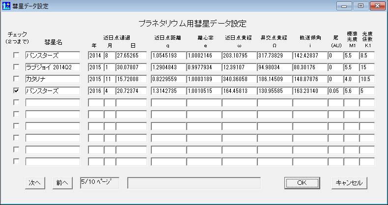 4.プラネタリウム用彗星設定画面の左下にある[次へ]ボタンを何度か押す。