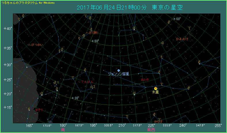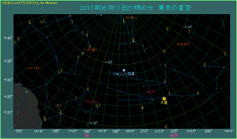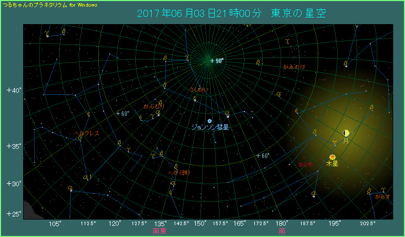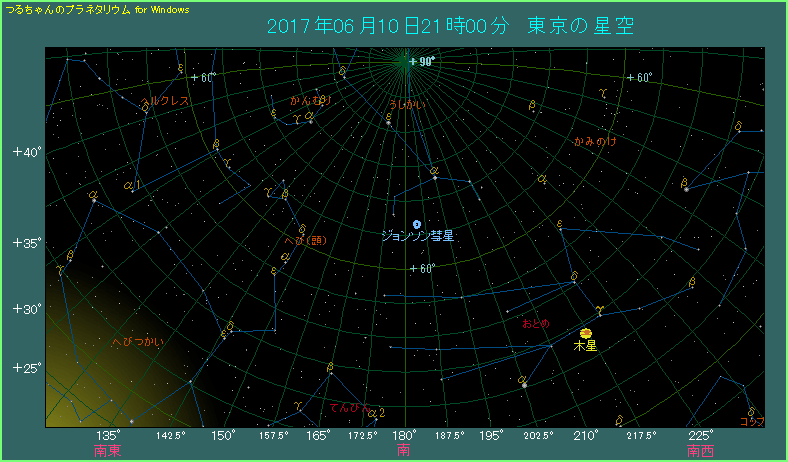 2017年6月にジョンソン彗星が見える位置を紹介します。引き続き星図は毎週土曜日、時間は21時としています。