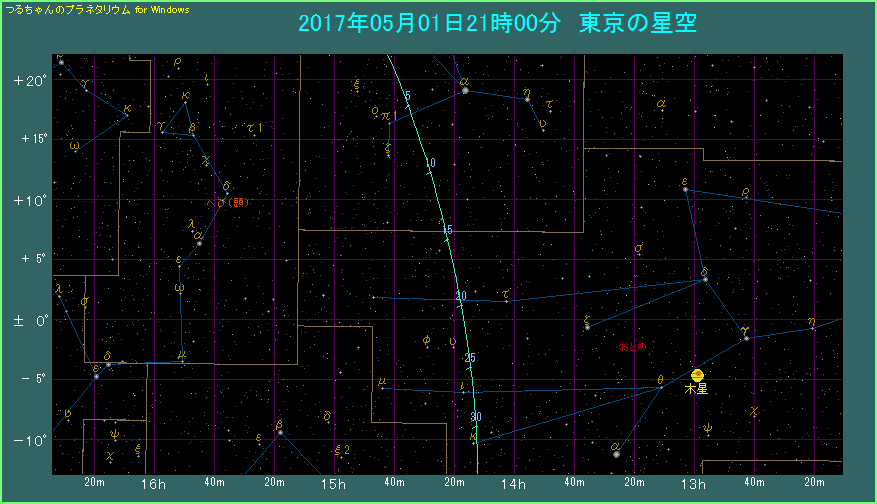 星座でいうと、うしかい座からおとめ座に移ります。この時期はひたすら南下するといったところでしょうか。6月上旬にジョンソン彗星が地球へ近づくことから、1日あたりの移動量が大きくなります。