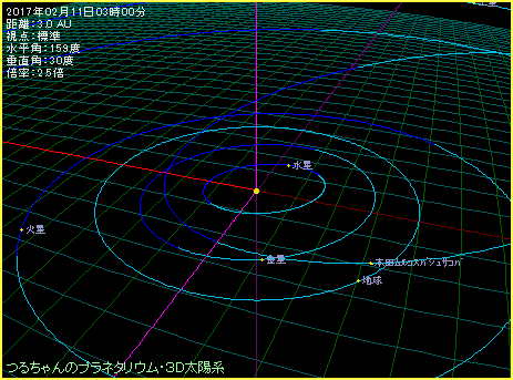 これまで紹介した画像は天文ソフト「つるちゃんのプラネタリウム フリー版」を使って簡易的にシミュレーションすることができます。ソフト起動後、次のようにして彗星データの設定を行ってください。プログラムは当サイトトップページの[ダウンロードとご購入]から、無料でダウンロードしてご使用いただけます。(Windows版 PCのみ)