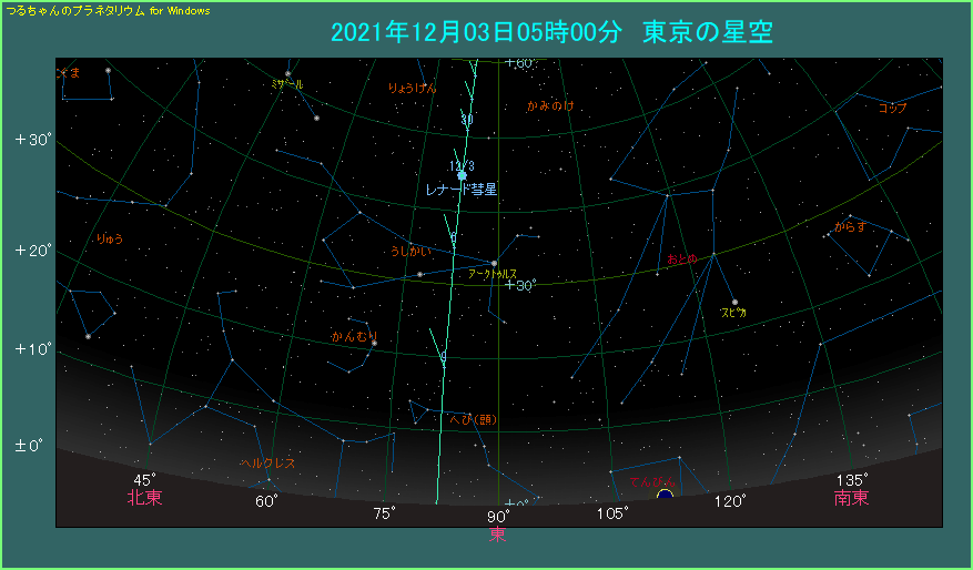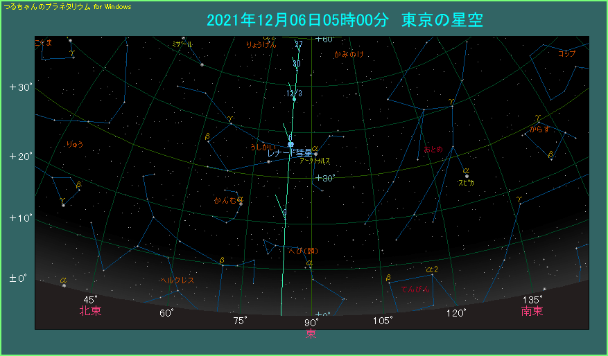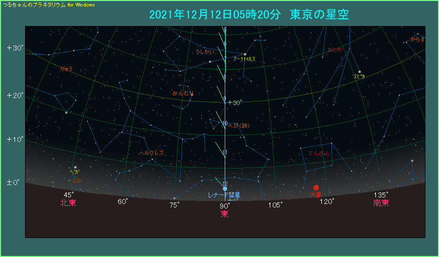 いかがだったでしょうか。寒い時期の早朝はつらいですが、レナード彗星は夜明け前が本命です。がんばって早起きして見つけてください!