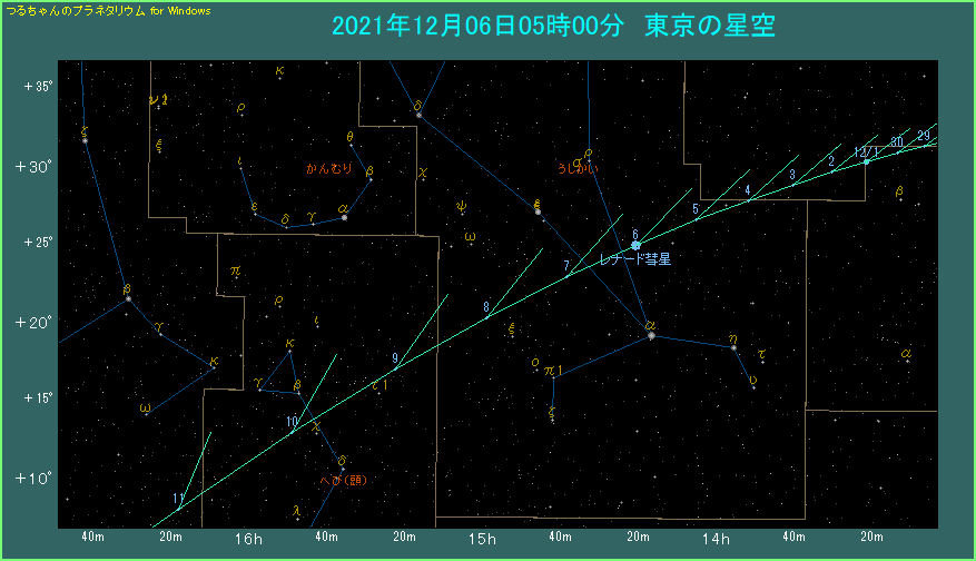 ここでは詳細な星図上にレナード彗星の移動経路を載せました。観測される際の参考にしてください。