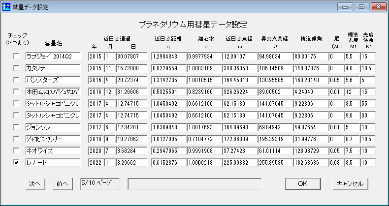 レナード彗星のデータ設定方法 |