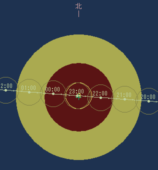 今後同じような食分となって東京で見られるものとしては、2047年7月7日に1.7513というのがあります。また同様に、2000年の食分を超えるのは、2094年6月28日に起こる月食で、この時の食分は1.8234です。