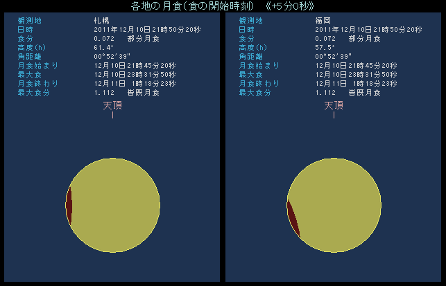 欠ける方向が違う例(開始から5分後、札幌と福岡)