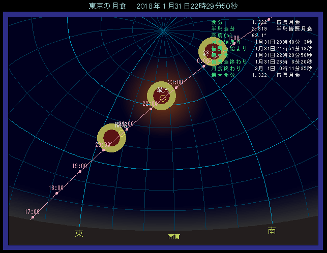 各地点とも今回の皆既月食は非常に条件が良く、日本全国で開始から終了まで、高い高度で観測できることがわかります。月が欠けたまま昇ったり沈んだりする、月出帯食や月入帯食もありません。