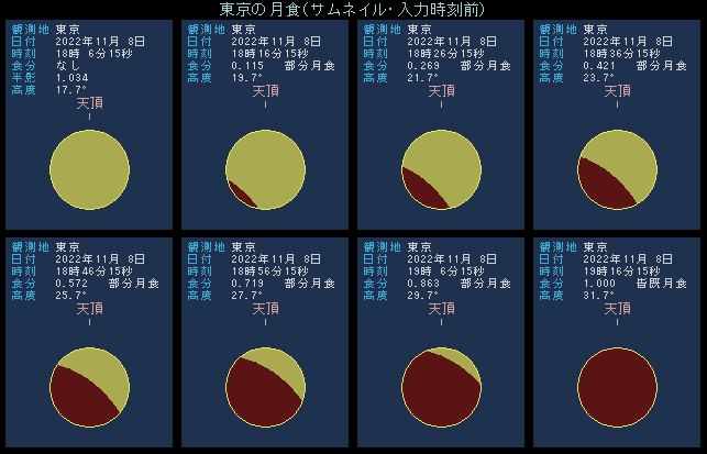 2022年11月8日は全国で皆既月食が見られます。