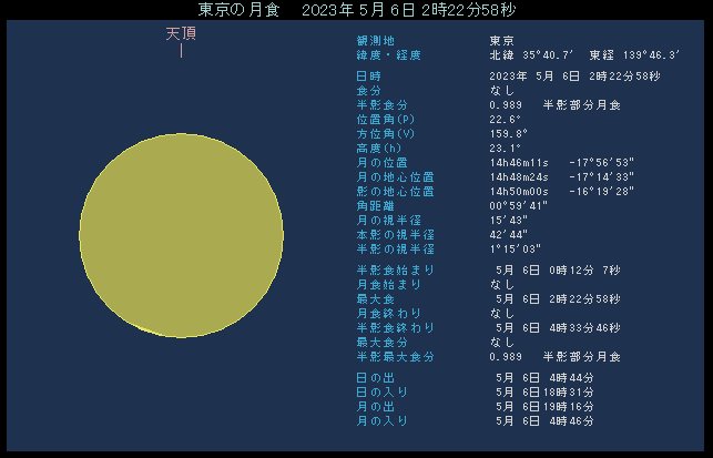 | 半影食の始まり | 5月6日 00時12.1分 |
