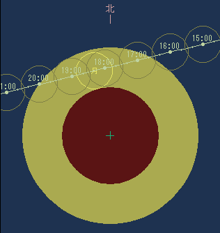 皆既月食を食分で表すと1以上になります。また、月が地球本影の中心に近づくほど大きな値となります。