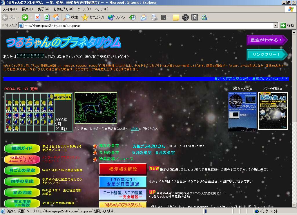 500000件目のアクセスは、滋賀県の野瀬さんと山本栄一さんがそれぞれ独立に獲得されました。 また、499999件目は東京都のwalrusさん、500001件目は宮崎県のぐったりさんでした。 4名の方にはそれぞれ「つるプラ」シェア版CD-Rを差し上げます。おめでとうございました。