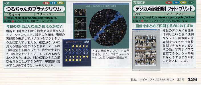PC Life 2002年3月号の「ホビーソフトはこんなに楽しい」のコーナーで、「つるちゃんのプラネタリウム」と「つるちゃんの3D銀河宇宙」が紹介されました。