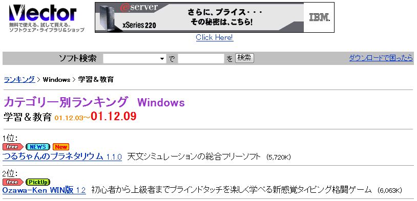 天文ソフトつるちゃんのプラネタリウムが2001年12月5日にベクターで新着ソフトレビューされました。この結果、同ソフトのダウンロードが大幅に増加し、次週の12月10日にベクターの総合ランキングで8位となってベスト10入りしました。このことは、以降、天文ソフトつるちゃんのプラネタリウムが広く知られる大きなきっかけになりました。