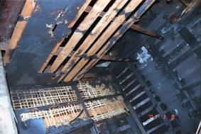 んっ?自宅アパート付近に消防車やパトカーが止まってるゾ。火事?あわてて自宅に駆け寄る。ナ、ナント自分の家が燃えて黒焦げになってる・・・。出火元は自宅ではないと聞いてひと安心。鎮火していたので中にはいろうとすると「床が抜け落ちるから気をつけろ」とのこと。中に入るとこりゃあひどい。半分黒焦げ、半分は消防の水。まともに使えそうな物は何一つない!パソコンは?