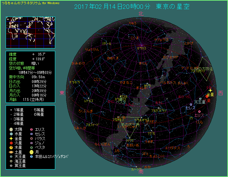 2017年のバレンタインデーの夜は東京の場合、20時半過ぎまで月がありません。月があると夜空が照らしだされて夜空が見えにくくなりますから、星空を見るには最適です。