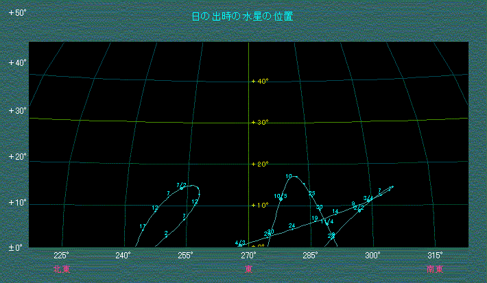 日の出時刻における水星の位置変化(2002年)