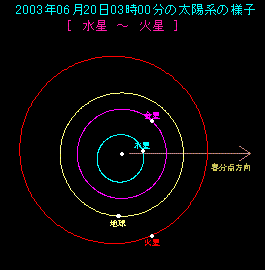 2003年6月20日 0時頃の火星の位置![]() |