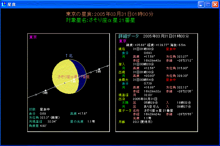 アンタレス食を「つるプラ」でシミュレーションしたいんだけど、食現象はシェア版の機能だし・・・。