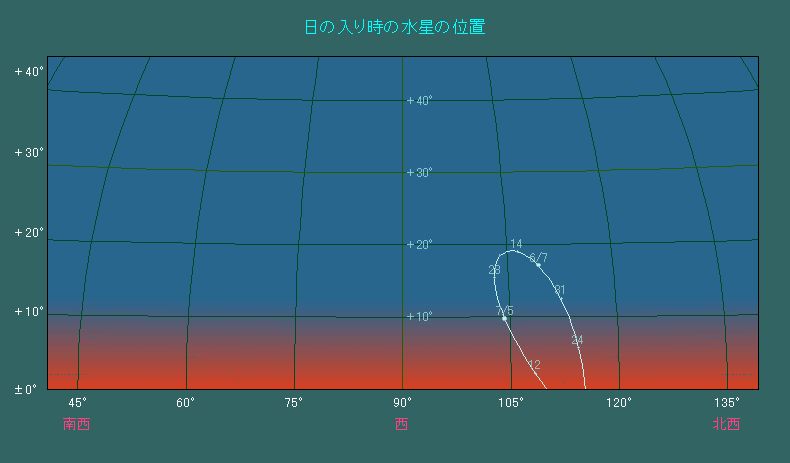 日の入り時刻における水星の位置変化