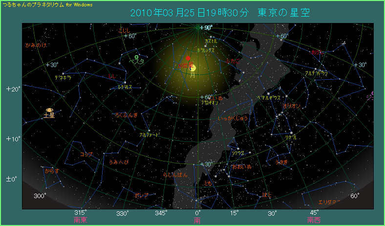 そんな火星へ3月25日に月が近づきます。両者の距離は東京の場合で4.6度ありますから接近と騒ぐようなものではありませんが、ふたつの明るい天体が並んだ様子を楽しむことができそうです。