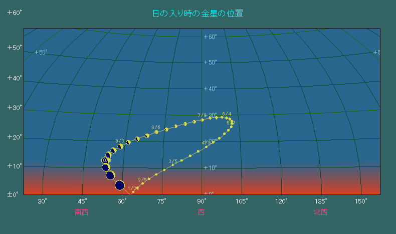 日の入り時刻における金星の位置