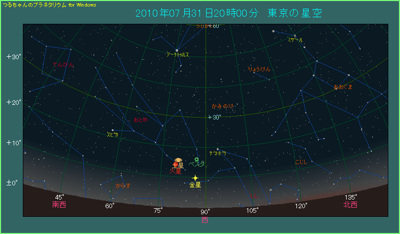 火星と土星が近づき金星も近い 2010年7月31日