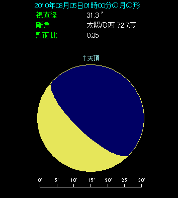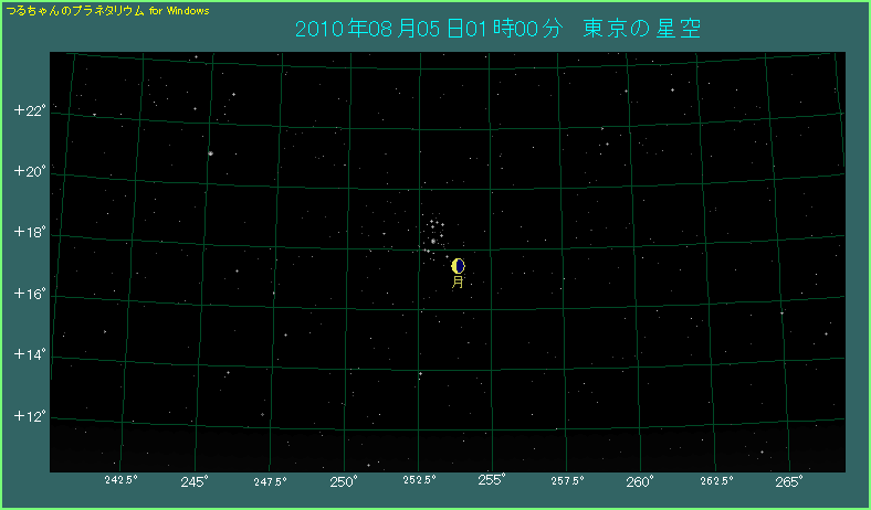 8月5日1時、東京 月とプレアデス星団の位置関係