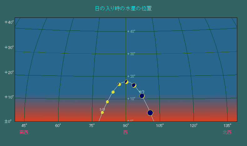 日の入り時刻における水星の位置