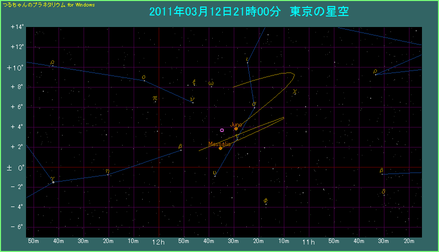 小惑星ジュノが衝、マッサリアも明るい 2011年3月12日