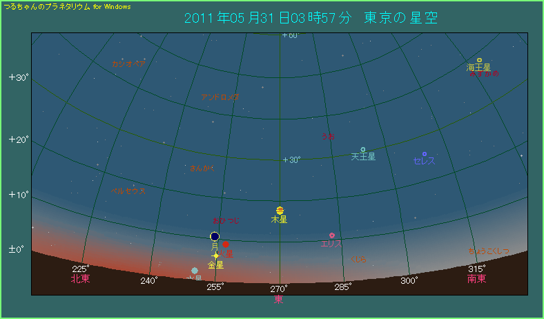 月が金星と火星に近づく 2011年5月31日