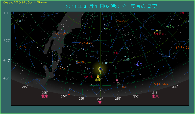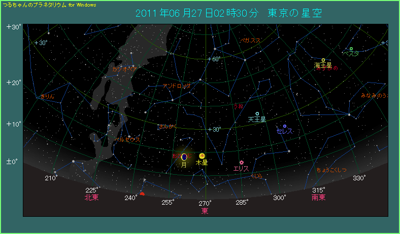 月が木星の近くを通り過ぎる 2011年6月26日から27日