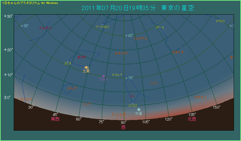 今年の3月23日に、年間を通して最も条件が良くなる東方最大離角が起こりましたが、7月20日もこれに匹敵するくらい良い条件の東方最大離角が起こります。
