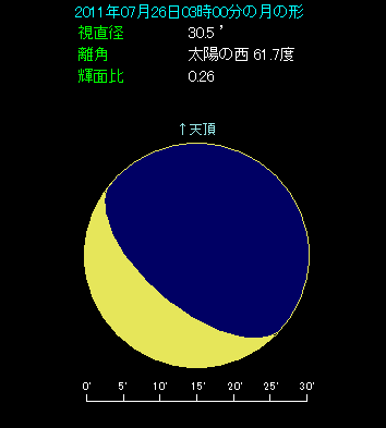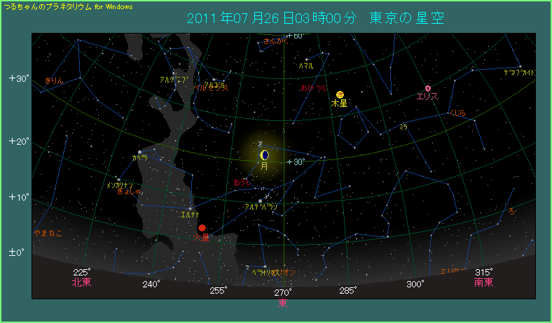 夜明け前の東天で月がすばるに近づく 2011年7月26日