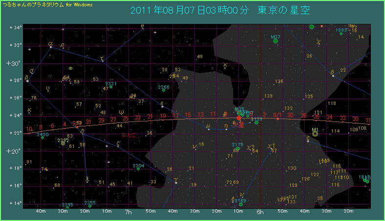 火星がふたご座のM35に接近 2011年8月7日