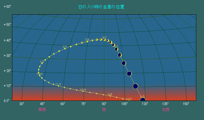 日の入り時刻における金星の位置
