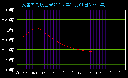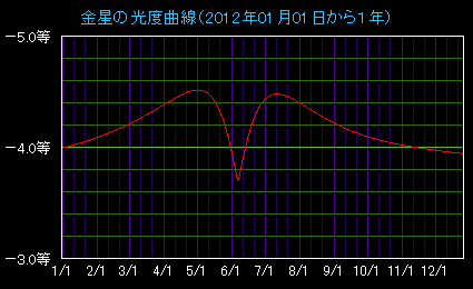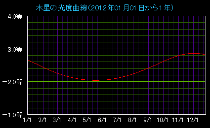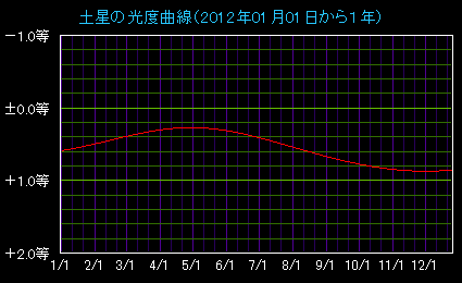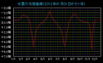 2012年の水星、金星、火星、木星、土星の光度曲線です。