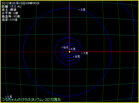 2月22日、地球と太陽と木星の位置関係