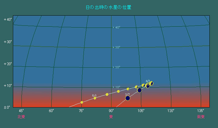 日の出時刻に水星が見える位置