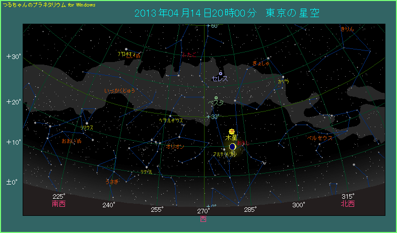 月と木星とアルデバランが集まる 2013年4月14日