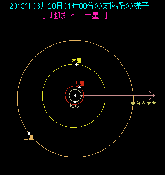 地球と太陽と木星の位置関係を示した太陽系の図