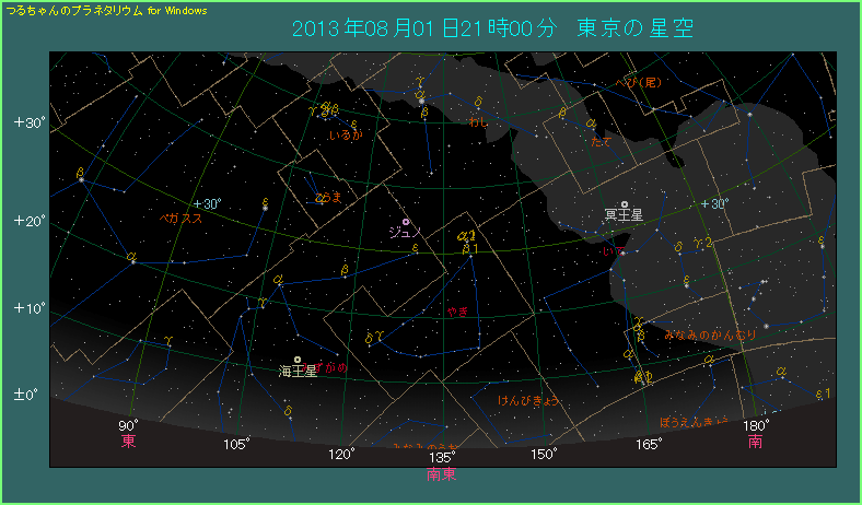 ジュノといえば、セレス、パラス、ベスタとともに、4大小惑星の一つに数えられる大きな小惑星です。といっても小惑星の中では大きいというだけで、直径は234Kmにすぎません。このため他の惑星と違って暗く、肉眼で見つけることはできません。そんなジュノが8月1日に衝を迎えて9.0等まで明るくなり、見つけるチャンスです。空が十分暗い場所からなら双眼鏡でどうにか見つけられる明るさです。しかし、ちょっと光害があったりすると双眼鏡では難しく、天体望遠鏡が必要になりそうです。