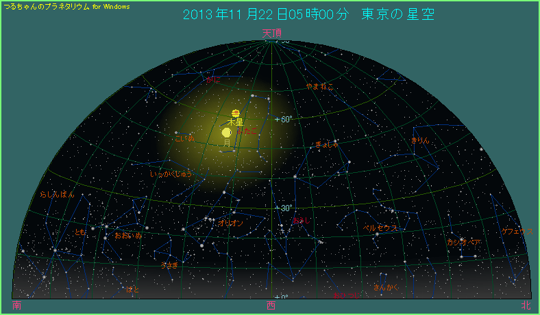 月と木星が近づく 2013年11月22日から23日