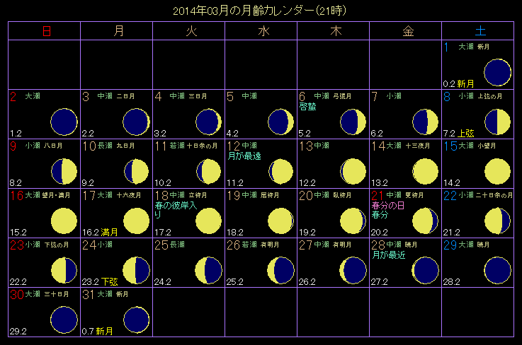 2014年3月の月齢カレンダー